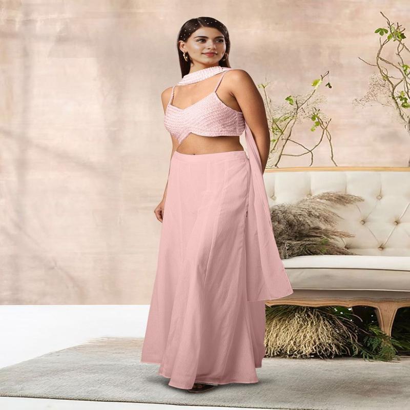 Peach Palazzo Set With Hand Embroidered Blouse And Dupatta - DFS00159
