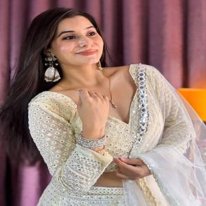 Off White Embroidered Georgette Lehenga Set With Dupatta