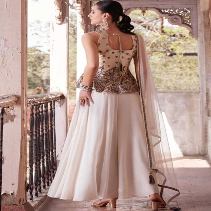 Majority of our items contain embellishments and embroidery and therefore fragile in their usage. From time to time beading/ sequence may get displaced and this is not regarded as a fault but is due to the nature of the work. These garments should be worn with care.