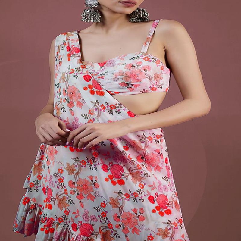 Red Palazzo Set With Printed Blouse And Dupatta - DFS00283