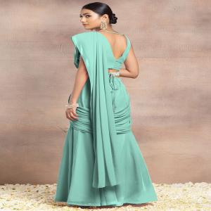 Sea Blue Draped Palazzo Set With Sequin Hand Embroidered Blouse And Belt - ILK05686
